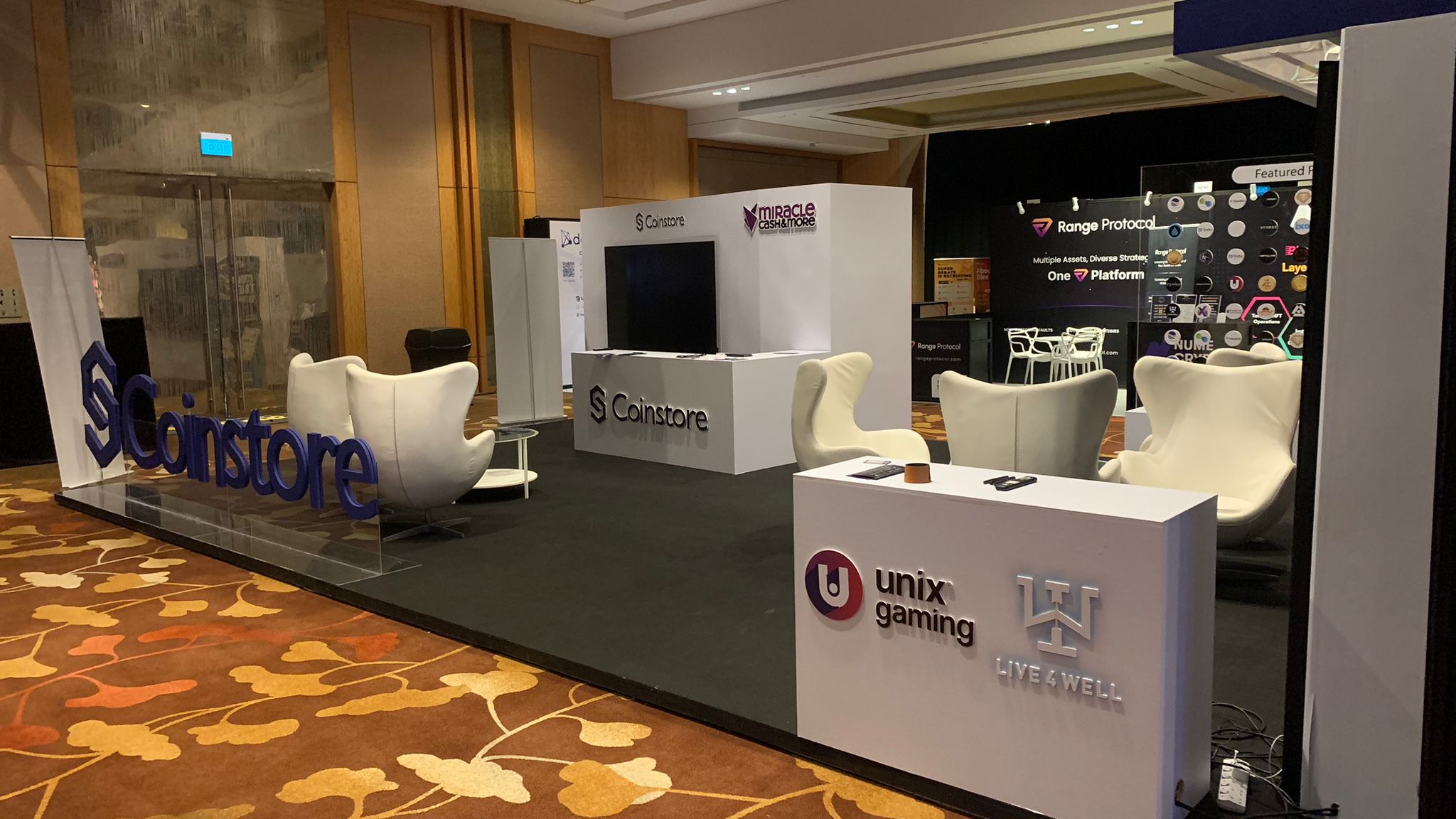 Token2049 thrives on its engaged crypto community. We designed Coinstore’s booth to convert passive viewers into active explorers of the cryptocurrency realm. Strategic layout planning ensured every visitor embarked on an immersive journey with Coinstore.